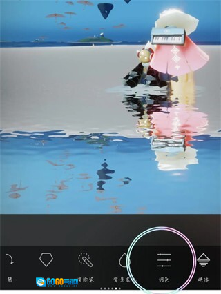 实现水面倒影的视觉效果,可依据实际需求对模糊程度、色彩调整、呈现样式等各项参数进行设置,确认无误后点击对勾按钮即可完成操作。