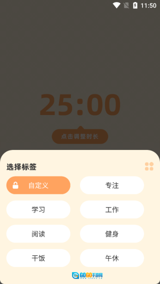 可自定义标签,也能选择已有的标签(点击时间即可设置倒计时时长)