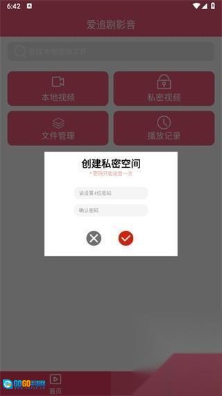 首页包含本地视频、文件管理、私密视频以及播放记录等服务。