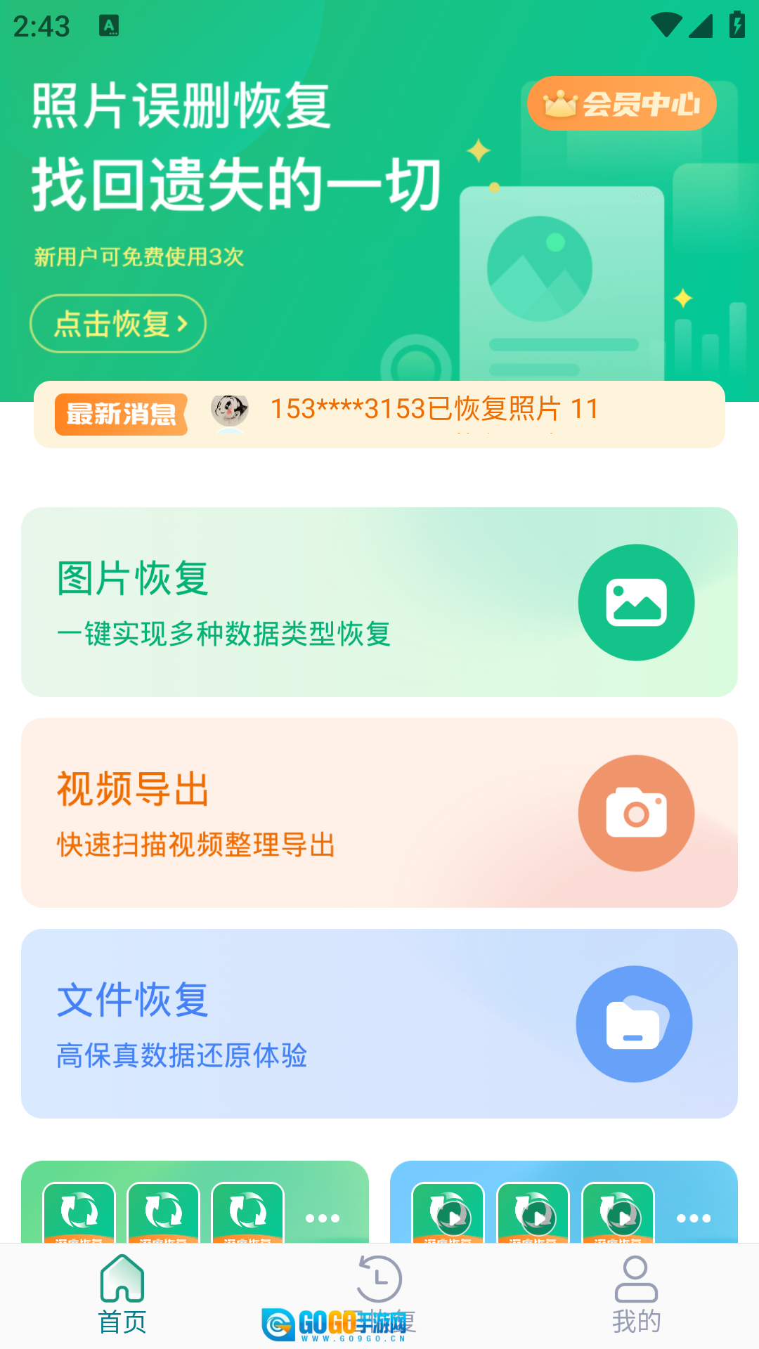 登录成功后点击图片恢复即可查看本机可恢复的照片