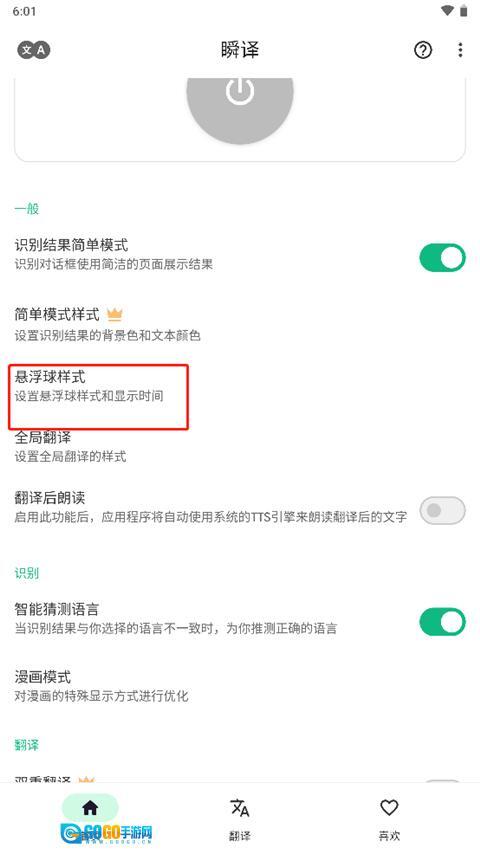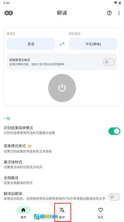 您能够在此处单独设定翻译的源语言,也可以让软件自行识别。