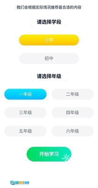 接下来我们要挑选学段与年级,这样才能匹配到更精准的学习内容。