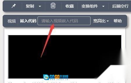 点击该按钮后,会弹出一个与图示相同的菜单,只需在嵌入代码的输入框中填入我们提供的视频代码即可完成操作。