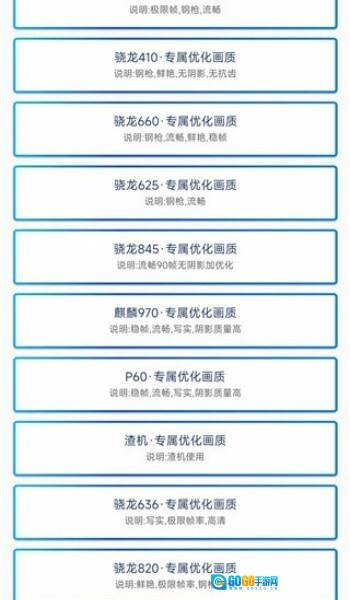 每一个机型配置都有画质可进行选择;