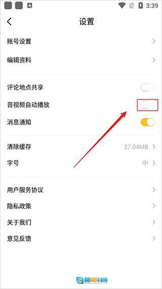 点击“音视频自动播放”右侧的按钮,把它关闭,让按钮呈现出灰色状态