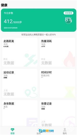 在本站安装微步运动应用并打开它,进入软件首页后,就能查看自己今日的运动步数、热量消耗等各类数据了。