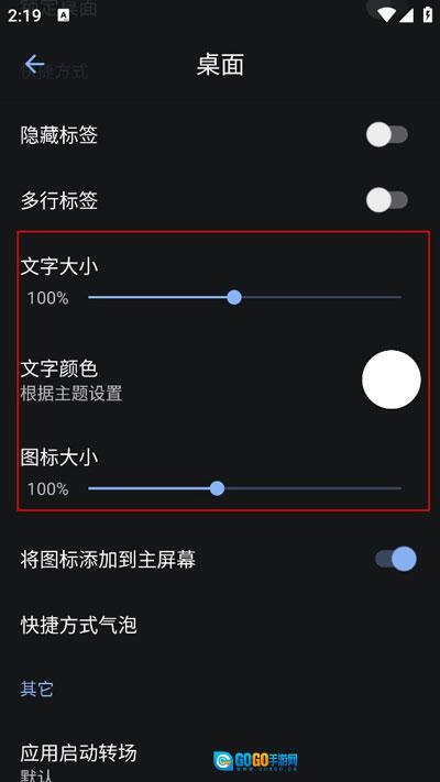 用户还可以设置文字大小、文字颜色、图标大小等。
