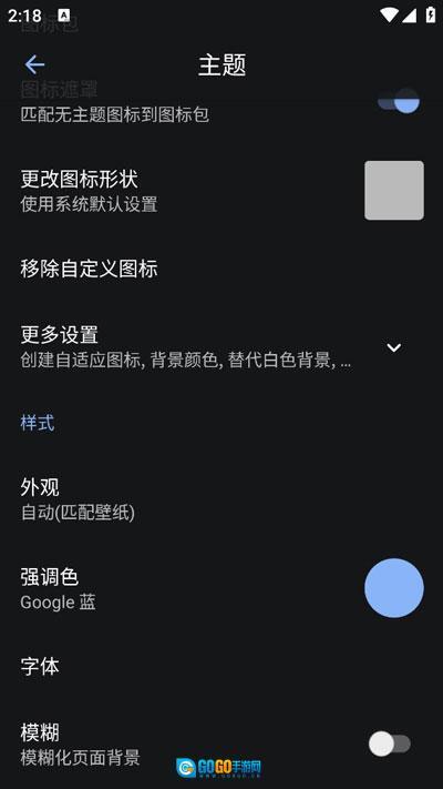 可以更换主题,挑选心仪的图标包,还能添加高斯模糊效果