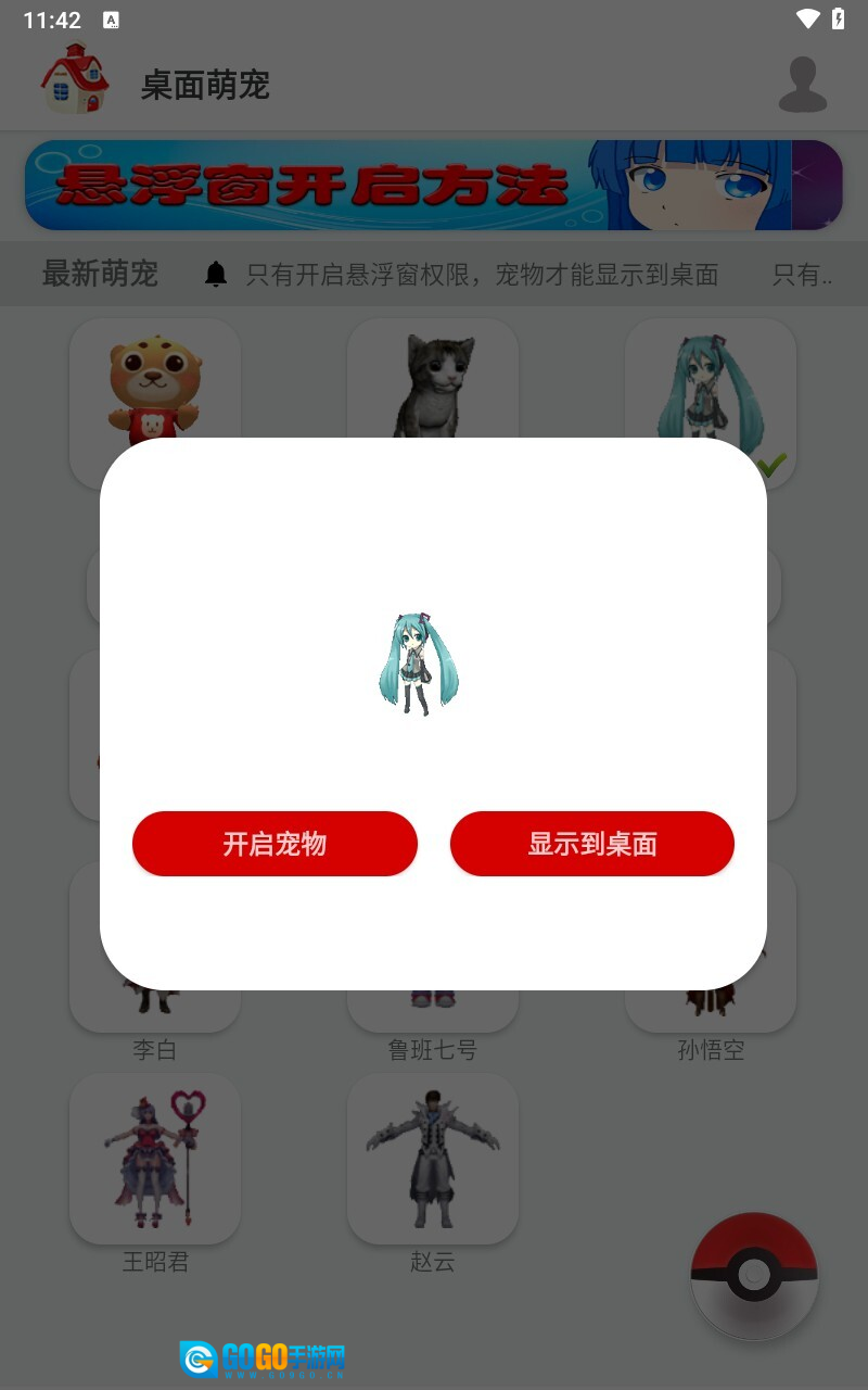 先点击开启宠物,然后显示到桌面就可以了
