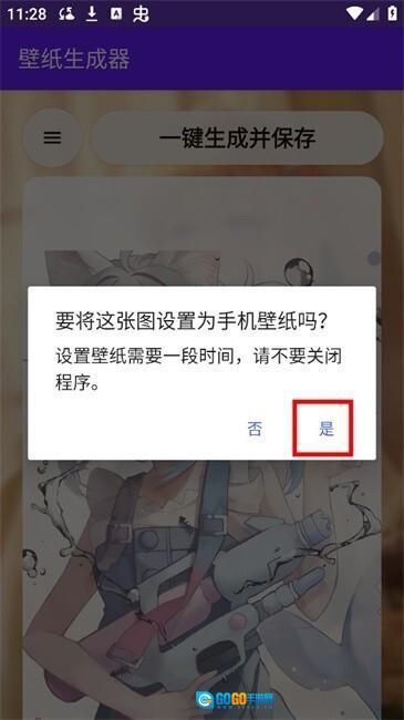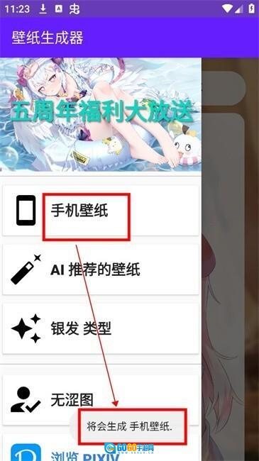 这里拿“手机壁纸”来举例,点击后就能看到“将会生成手机壁纸”的提示
