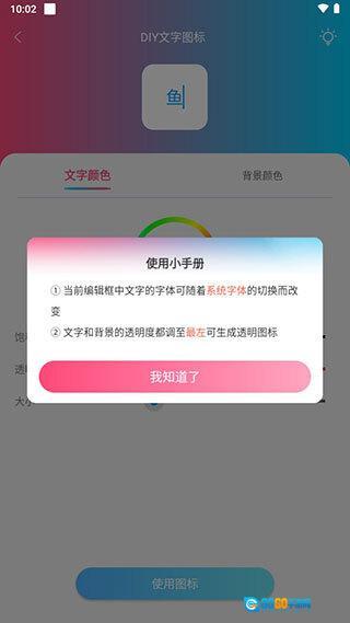 ②文字和背景的透明度都调至最左可生成透明图标。