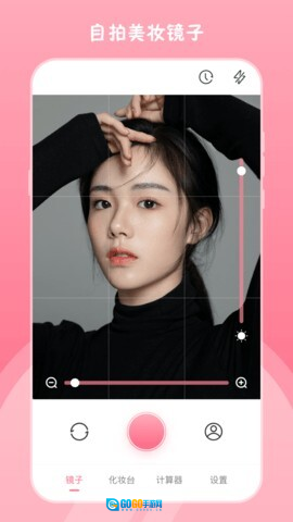 软件界面简洁清爽,用户能够在线调节亮度,还可以左右转动镜面,从不同角度查看自己的样貌。