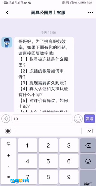 进入客服对话框后,依据所提供的服务选项,在输入框内输入数字“10”。