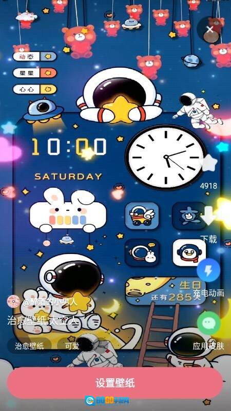 选择心仪的壁纸资源后,用户既能一键应用,也可将其设置为壁纸、充电动画等效果。