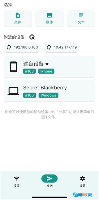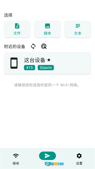 LocalSend的操作逻辑十分直观,界面布局清晰易懂,主要由接收区域、发送模块和设置选项这三个核心部分构成。