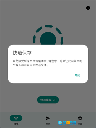 要是觉得每次接收文件都得点同意太麻烦,也能开启快速保存功能。开启后客户端会自动接收文件传输请求,不过这也可能带来被他人骚扰的风险。