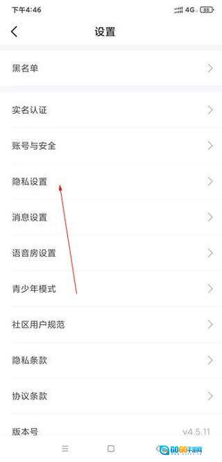 在设置界面找到隐私设置