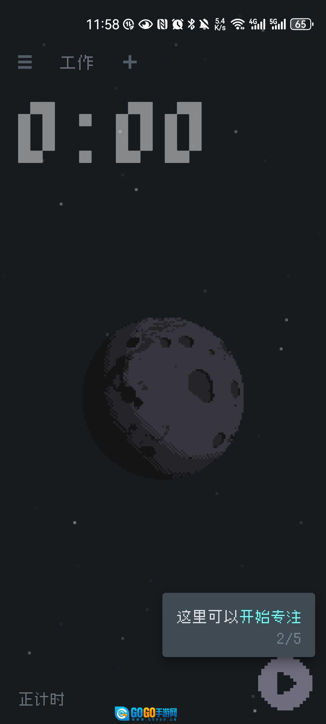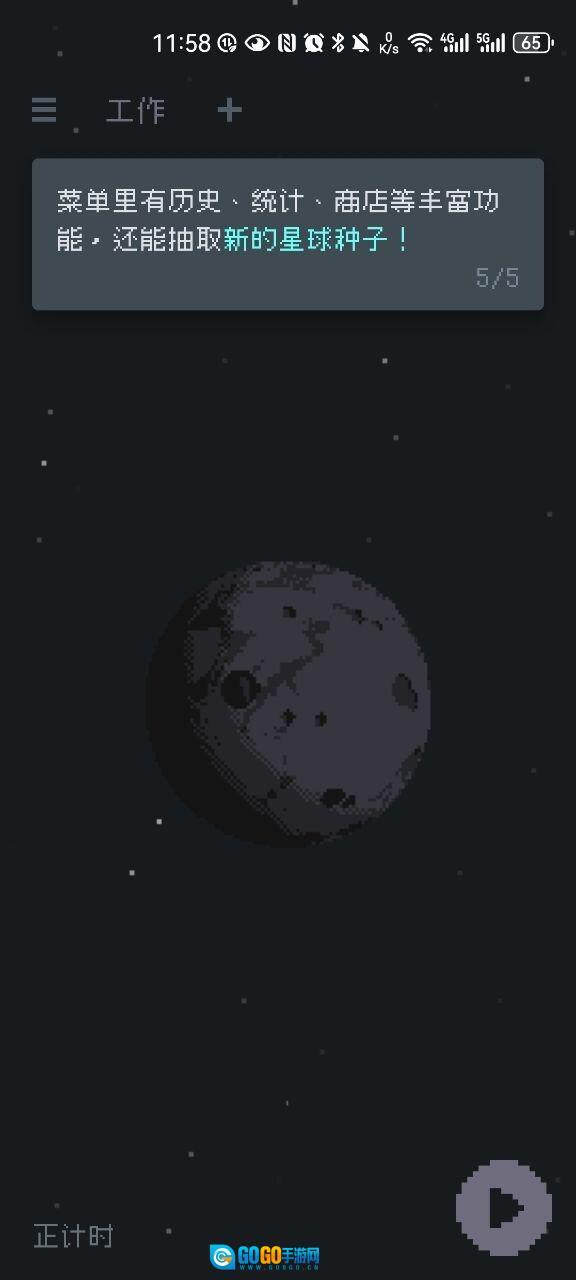 首先挑选自己钟爱的星种,再选定需要计时的具体事项,我在这里选的是“火星”星种和“工作”相关事项。此外,还能切换不同的专注计时模式,包括正计时、番茄工作法、倒计时以及硬核模式。