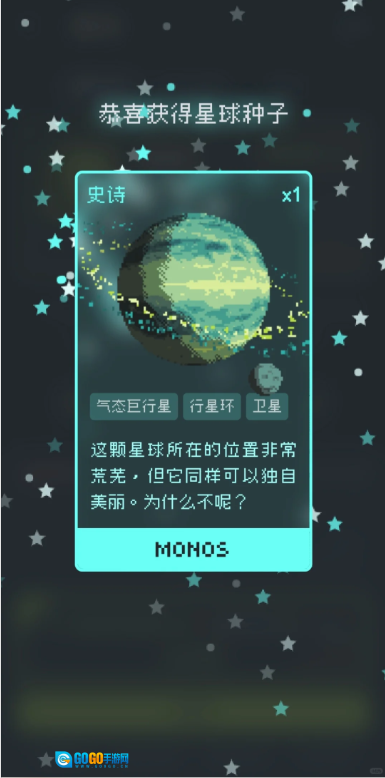 菜单中包含历史、统计、商店等多样功能,并且可以抽取新的星球种子。