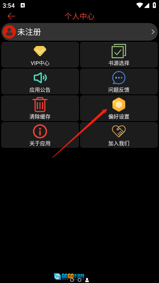 在个人中心页面点击“偏好设置”。