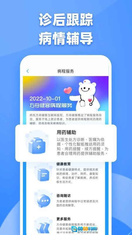 健康档案管理功能:助力用户建立和维护个人健康档案,可记录体检报告、问诊记录等信息,方便对自身健康状况进行长期追踪。