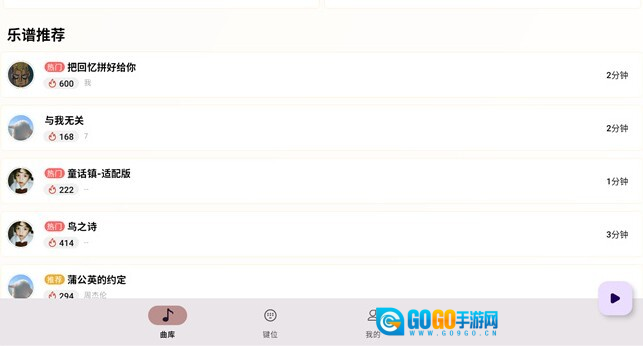 一键钢琴:这款软件海量热门游戏乐谱,无需繁琐设置,只需一键操作,就能自动演奏钢琴曲目。