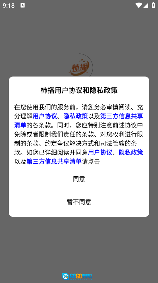 首先在本站安装好柿播,查看并同意相关政策与协议。