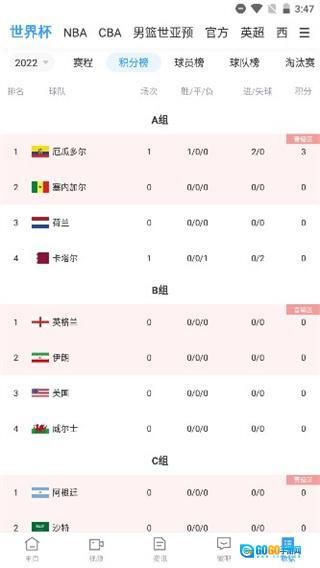 最后在数据页面中,还能查看各个国家比赛的分组情况,以及胜负、积分、排名等信息。
