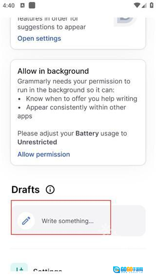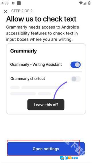 在本站完成Grammarly相关操作后,点击下方的“open settings”按钮。