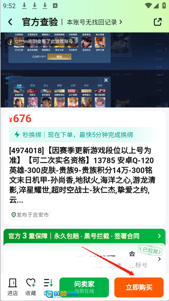 直接点开所需账号,就能看到详细介绍,若觉得合适,直接点击“立即购买”按钮就行。