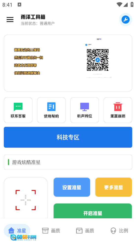 雨泽工具箱是一款专为游戏玩家设计的辅助工具,了丰富多样的游戏功能。无论是调整游戏画质、画面比例,还是开启准星功能,都能轻松实现。只需获取相应权限,就能使用超级全面的准星样式,玩家可根据个人喜好自由选择。其画质功能还能有效解决高画质下人物显示不清晰的问题,让游戏角色更加醒目。