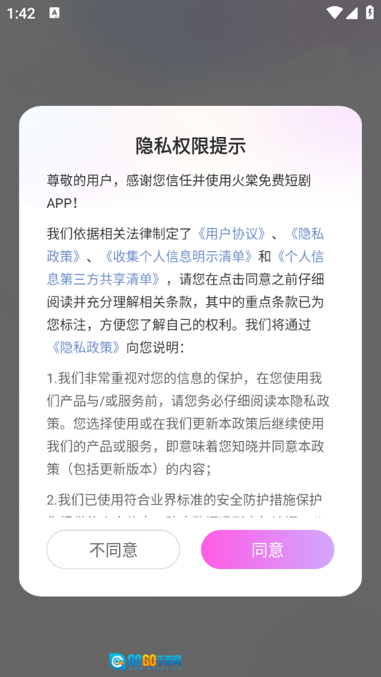首先在本站完成火棠免费短剧的安装,随后查看并同意隐私政策及用户协议。