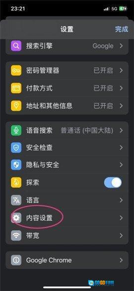 找到内容设置