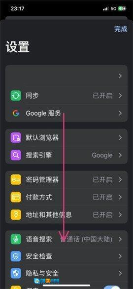 设置页面向下滑动,