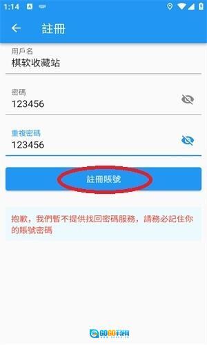 填入用户名和密码,点击“注册账号”即可完成注册。