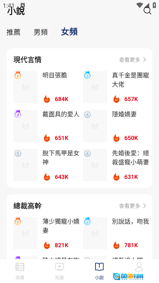 进入“小说”页面后,无论是男生还是女生喜欢的小说,都能在这里找到。