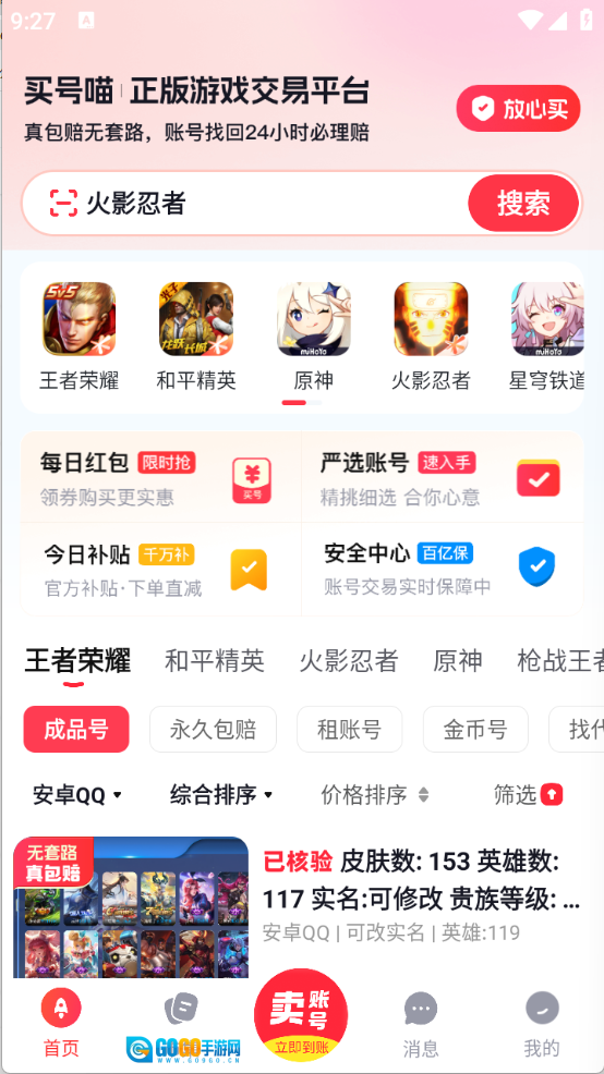 买号喵是一个专注于游戏账号交易的安全平台,这里汇集了海量不同类型的游戏账号,像王者荣耀、和平精英、蛋仔派对等热门游戏账号都能找到。平台对所有待发布的游戏账号都进行了严格审核,确保账号质量,不仅性价比超高,还能让大家买号不踩雷,有超多热门游戏账号可供挑选。