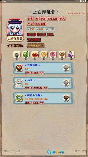 点击你想查看的顾客,比如上白泽惠音,就能看到该角色的喜好、羁绊等详细信息了。
