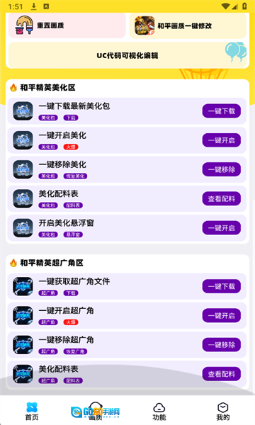 提供 M416、AWM 等主流枪械的 “黄金龙骨”“梦幻火箭” 等皮肤美化包,支持一键替换,无需 Root 权限。