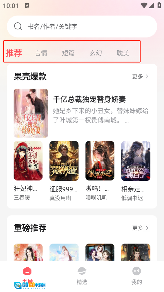 在“书城”板块的顶部菜单里,陈列着丰富多样的小说类型,像言情、玄幻、耽美等都涵盖其中。