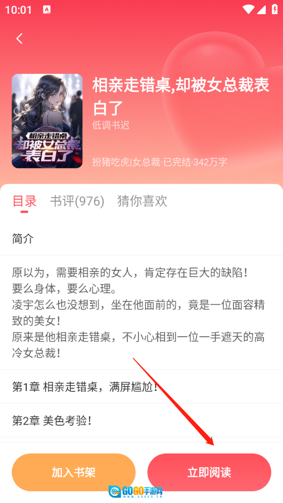 用户直接点开想看的小说,点击“立即阅读”。