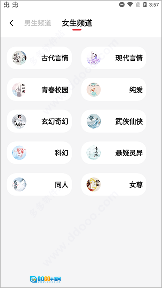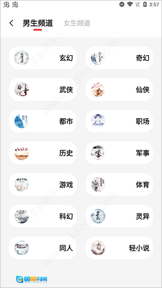 知轩藏书的手机端同样设有男生专区和女生专区。