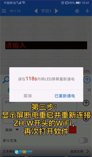 显示屏断电重启后,重新连接ZH-W开头的WIFI信号,然后再次打开软件。