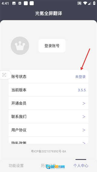 操作结束后,个人中心页面的账号状态会变为“未登录”。