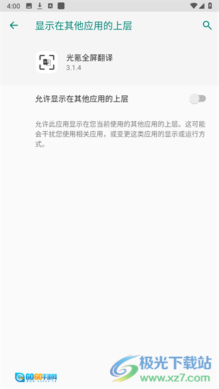 之后点击上方的悬浮球,把“允许显示在其他应用的上层”这个服务开启。