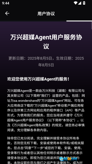 打开用户协议页面查看相关内容后点击确定。