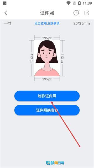 在证件照尺寸选择界面,选中【一寸-25*35mm】这个尺寸选项,即可进入对应的证件照制作页面。