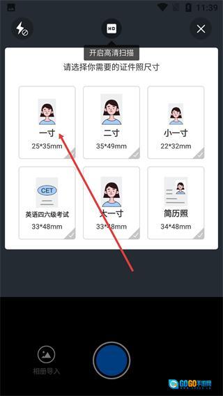 进入这个界面后,找到【证件照】功能选项并点击,就能进入证件照尺寸选择的操作界面。