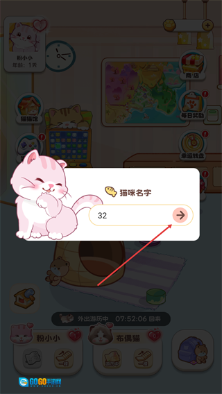 点击【粉小小】对应的名称区域,会弹出可用于修改的“猫咪名字”输入框。