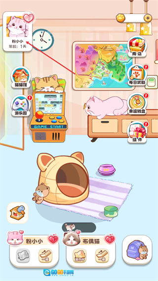 沉浸式体验各类新奇玩具,能增添更多互动乐趣,快和猫咪一同嬉戏,赢取金币吧。